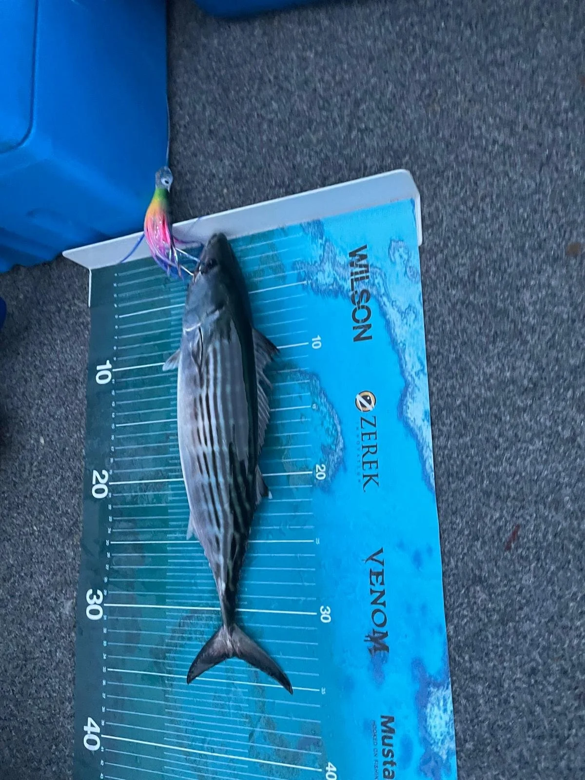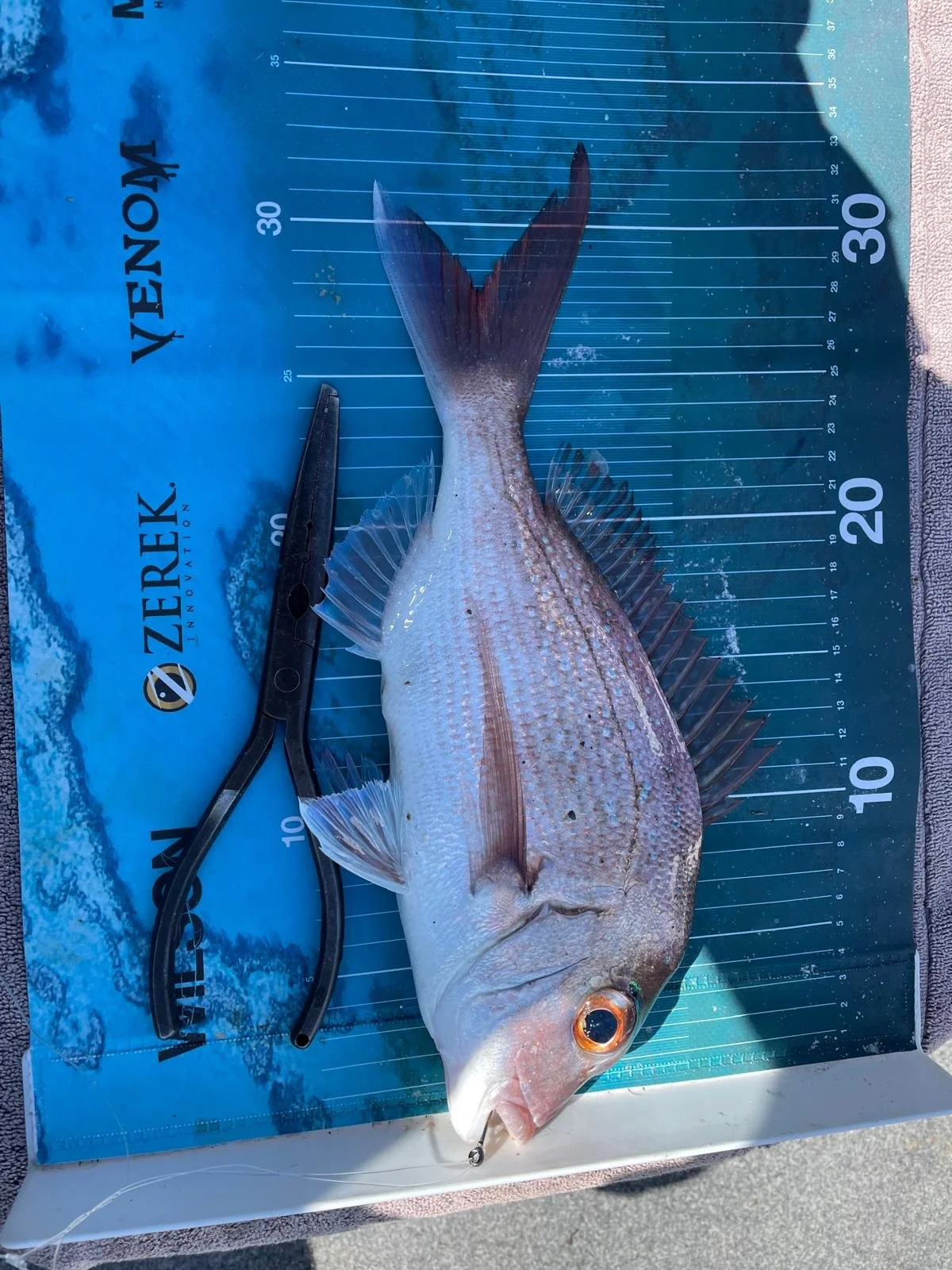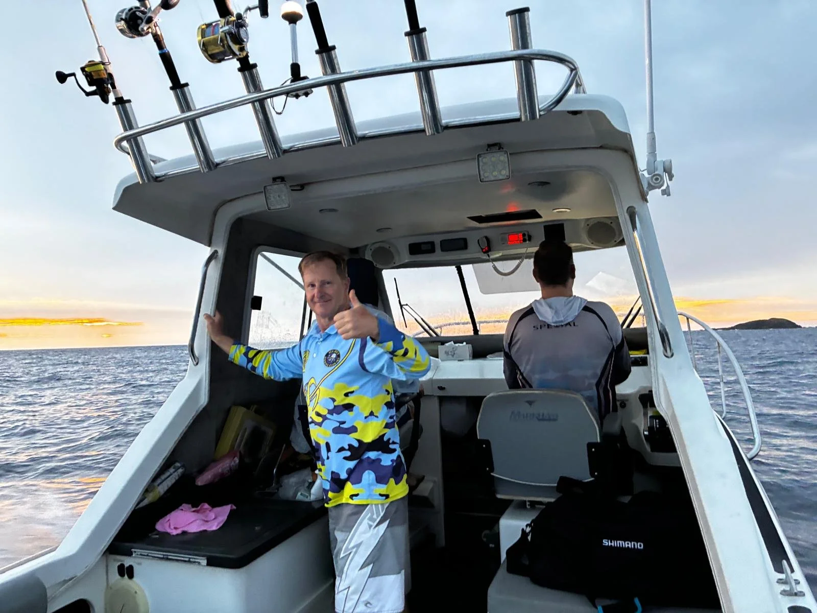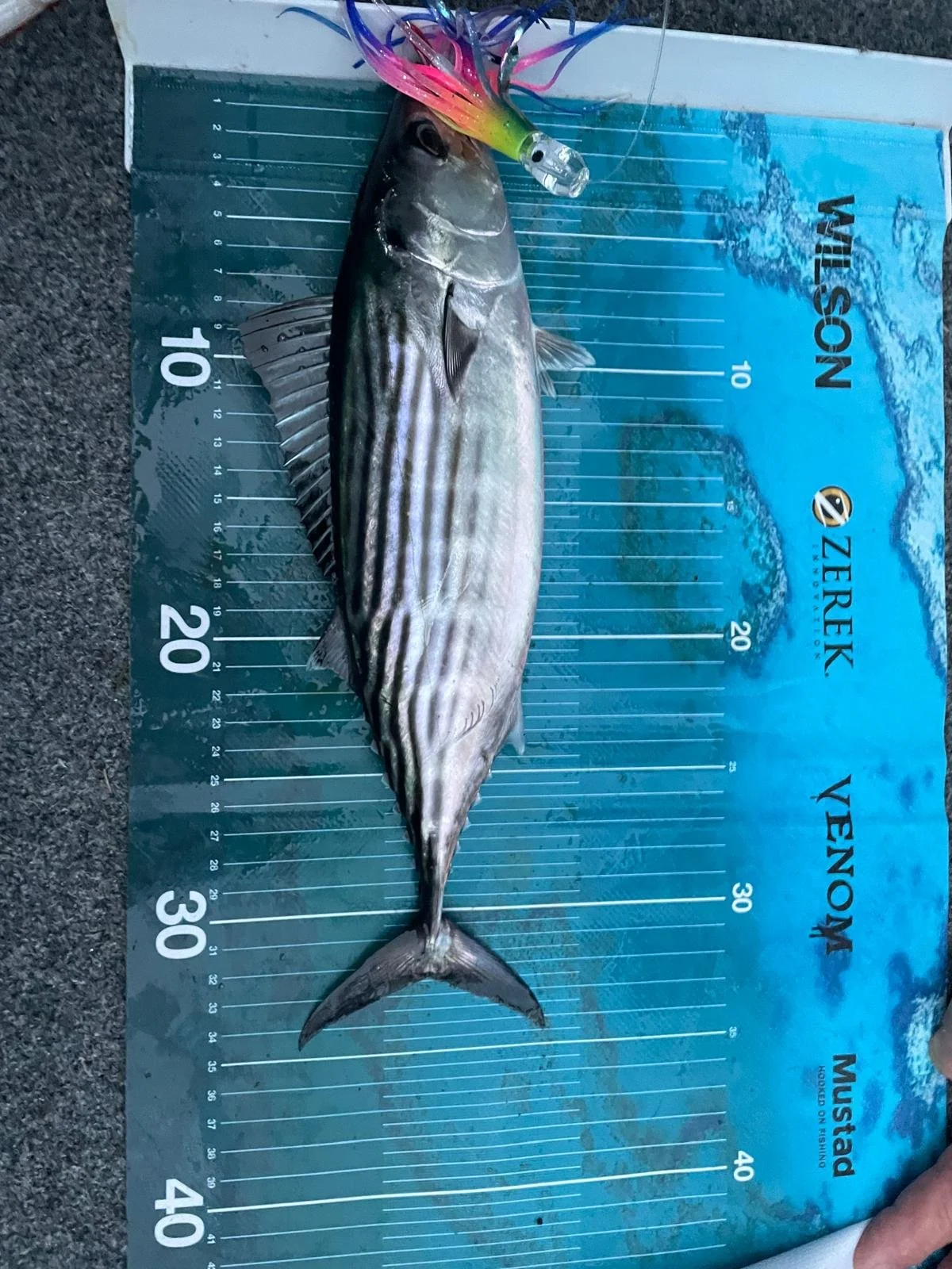 Our boats congregated around the area of Roy’s previous day’s Marlin conquest, but after hours of persistence our hopes began to fade, with no strikes forthcoming despite mountains of teasing bait balls and ideal water temperature. ‘ You should have been here yesterday’ soon rang true. Bottom bashing soon became the order of the day but again, the fish were few and far between. Some nice Bonito were landed by Andreas, Ron Abdila, Mick Withford and Robert Hill, but the outside boats were upstaged by Peter Bylsma and Ben Withford landing some nice bream and whiting between them on Fingal Beach.